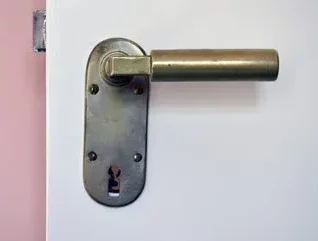 Die aus dem Bauhausgebäude stammenden Türdrücker verbinden die Grundformen Quadrat und Kreis. Ihre glatten, leicht zu reinigenden Oberflächen genügten den Ansprüchen an moderne Wohnhygiene.