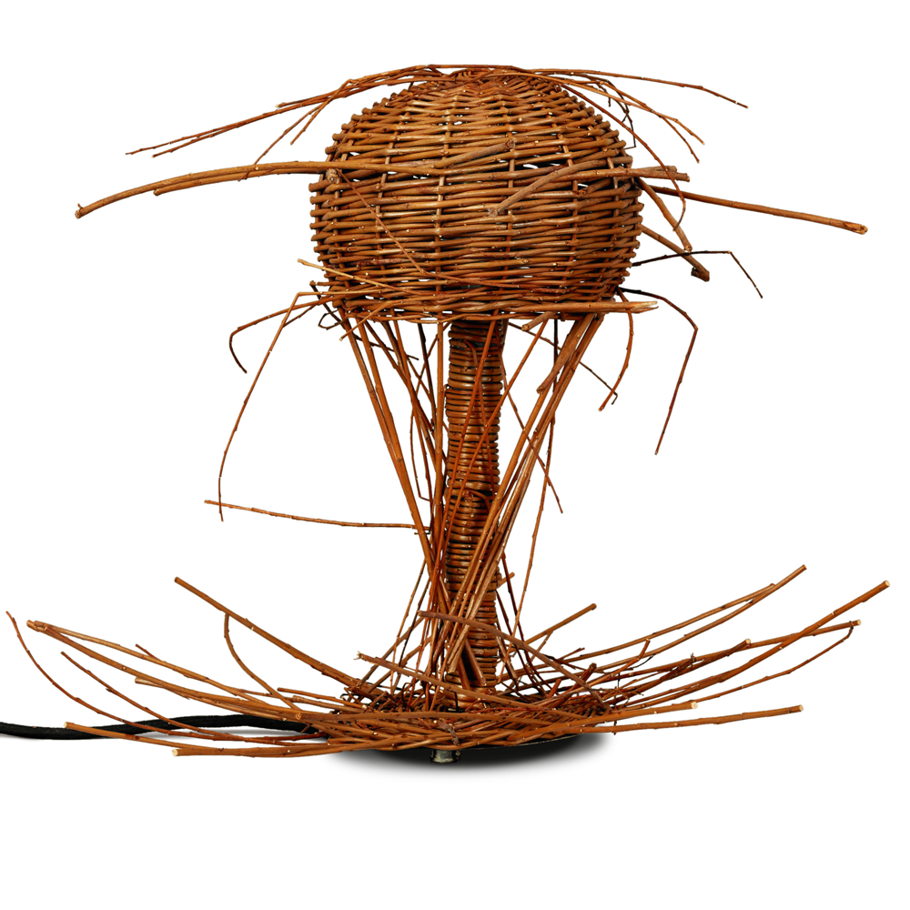 31 individuelle Auseinandersetzungen mit einem Gegenstand. Überarbeitet, kommentiert, uminterpretiert, verfremdet, mal ironisch, mal wertschätzend, mal grotesk. Innerhalb von zwanzig Jahren entstand eine vielfältige Werksammlung, ausgehend von einem als idealtypisch und in seiner Formvollendung nicht zu übertreffenden Werkstück. Jochen Fischer beispielsweise umflicht die Leuchte vollständig mit Weiden, lässt die Ikone damit scheinbar komplett verschwinden – nicht ohne ihre Erscheinung durch ein sinnliches Lichtspiel wieder in Erscheinung treten zu lassen. Fritz Schwegler setzt der Wagenfeld-Leuchte auf humorvolle Art eine Narrenkappe auf. und Susanne Windelen spachtelt die perfekte Glätte der Leuchte mit weißem Kunststoffharz über, mischt die Masse mit fluoriszierenden Partikeln – und stellt so auf ihre Weise das Leuchten der Leuchte in den Mittelpunkt.