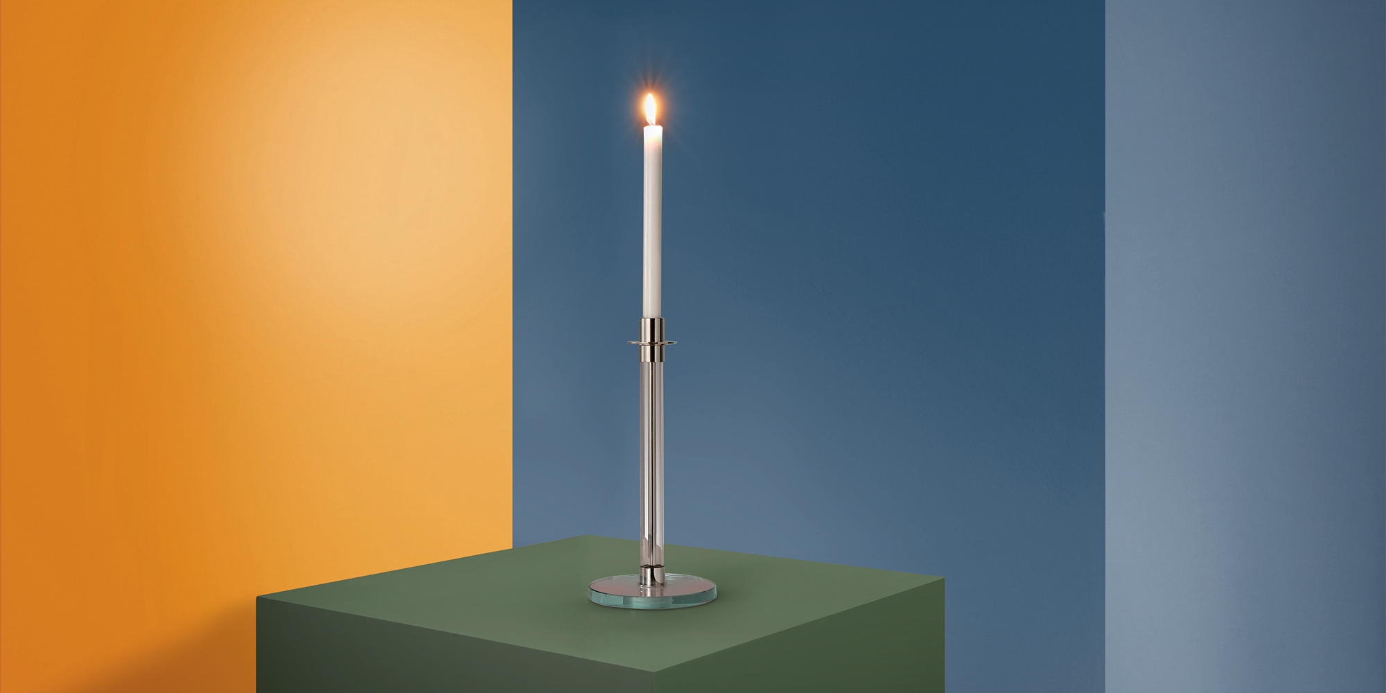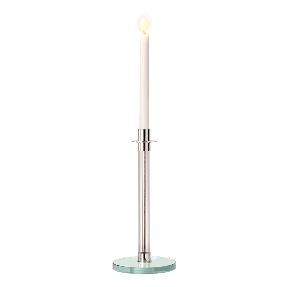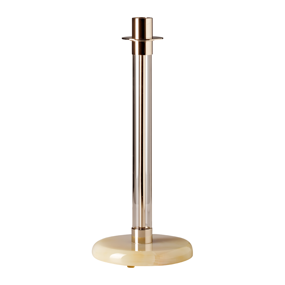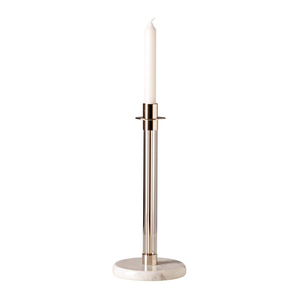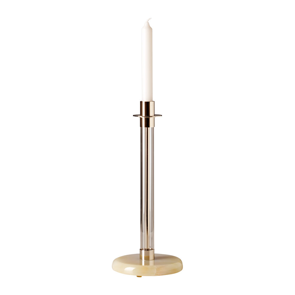 Der Fuß besteht aus Marmor, der Schaft ist in der Konstruktion dem der Wagenfeld-Glaslampe ähnlich. In einem Glasrohr läuft ein vernickeltes Rohr, das den Kerzenhalter trägt.