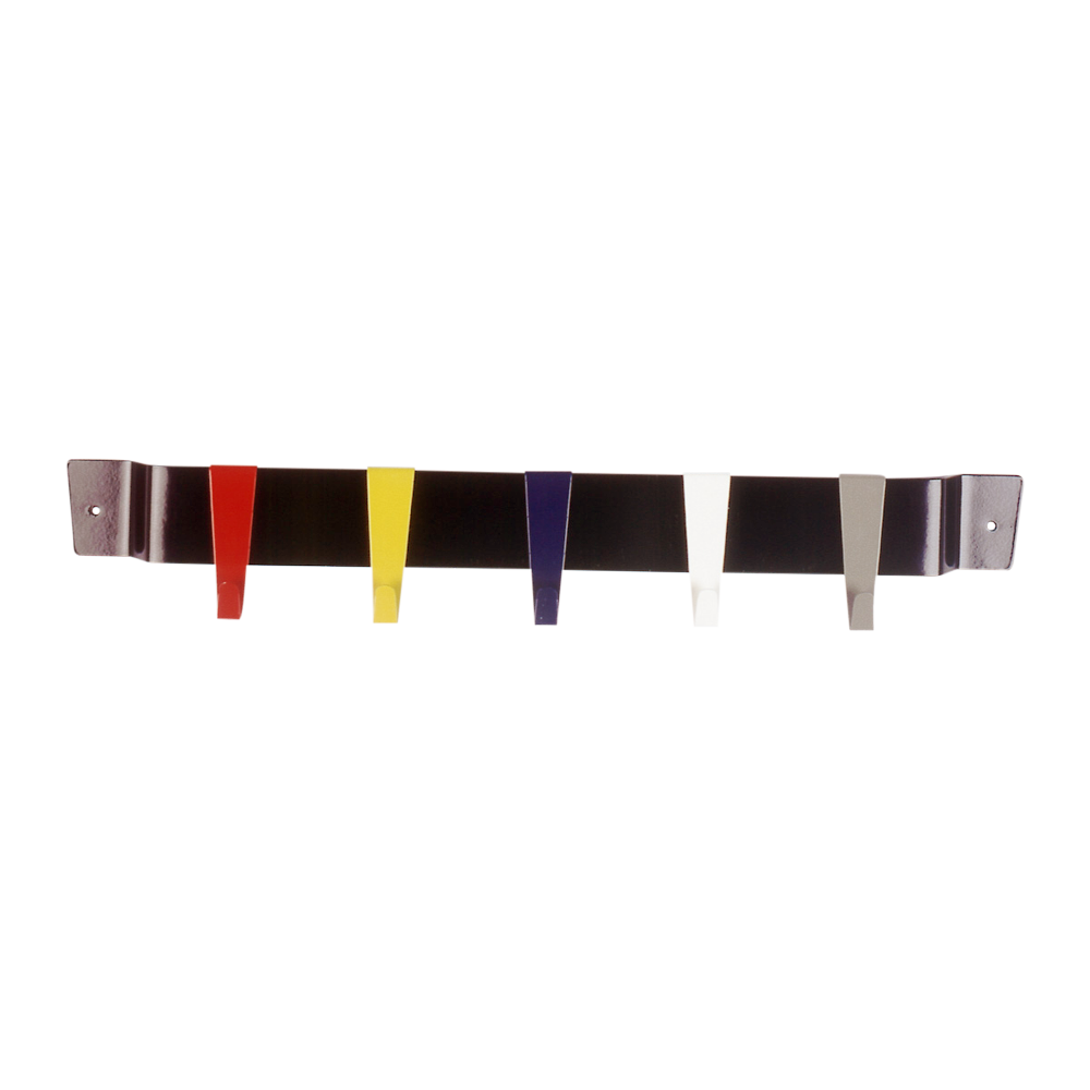 Vilmos Huszár gilt als der große Unbekannte der Künstlergruppe DeStijl, die er mitbegründete. Zahlreiche Werke des vielseitigen Malers, der auch Interieurs schuf, sind heute verschollen. Dabei lieferte Huszár der Kunstwelt wichtige Impulse und unterhielt enge Beziehungen zur Avantgarde in Berlin und Paris. Als Gestalter von Logos, Zigarettenschachteln, Plakaten, Stoffmustern und Möbeln hatte er keine Angst vor alltäglichen und kommerziellen Dingen. Doch in erster Linie blieb er Maler, was man auch der um 1925 entstandenen, fröhlich-eleganten Flurgarderobe ansieht. Ihre Haken zeigen sich natürlich in den Farben von De Stijl.