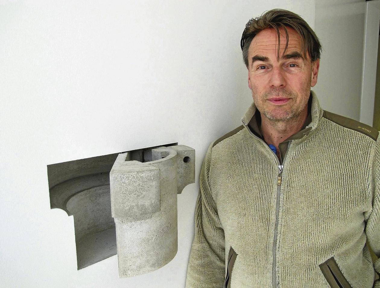 Bei der Entwicklung der Leuchten „Trabant 1-3“ für Tecnolumen konnte er auf seine große Erfahrung im Umgang mit seinem bevorzugtem Material Feinbeton zurückgreifen.