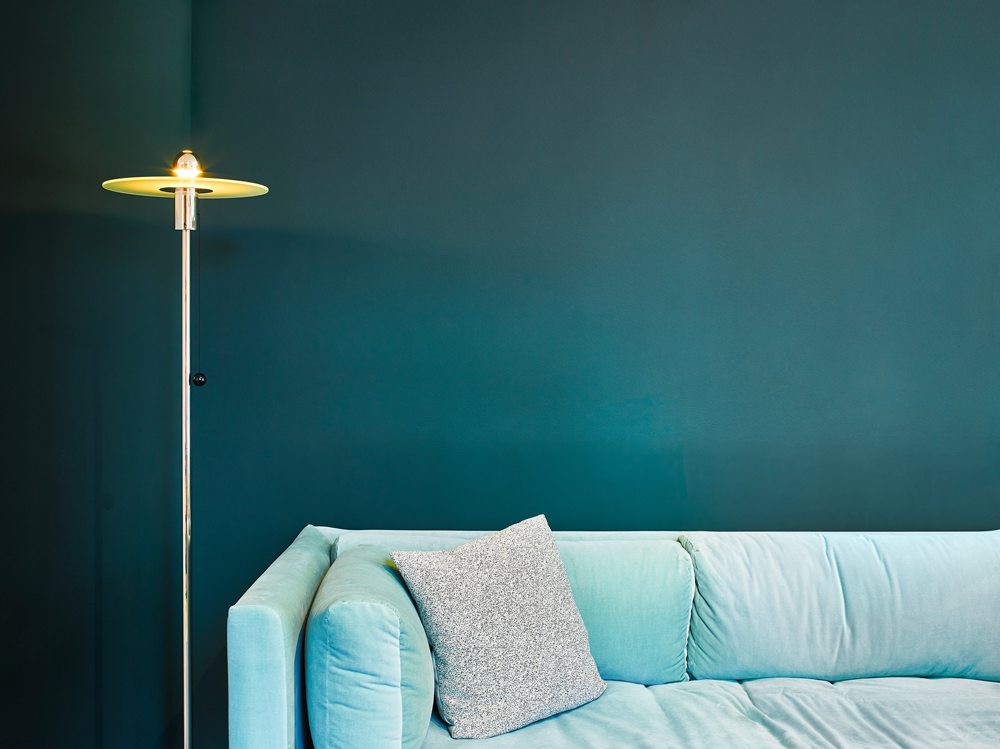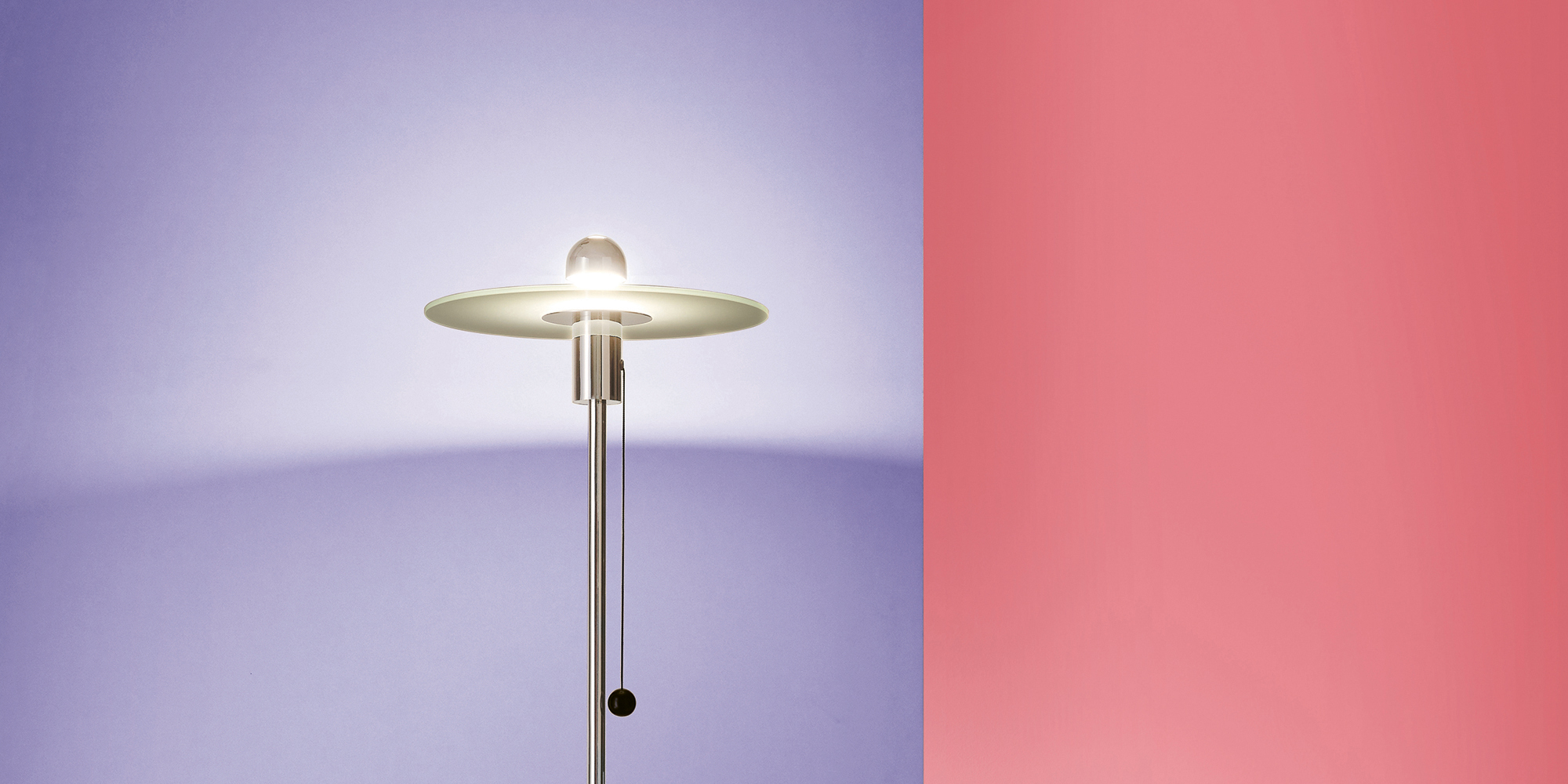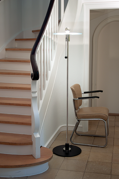 Gyula Pap entwarf in seinem letzten Jahr als Studierender am Bauhaus in Weimar für das von Georg Muche und der Bauabteilung geplante Versuchshaus „Am Horn” diese Stehleuchte.