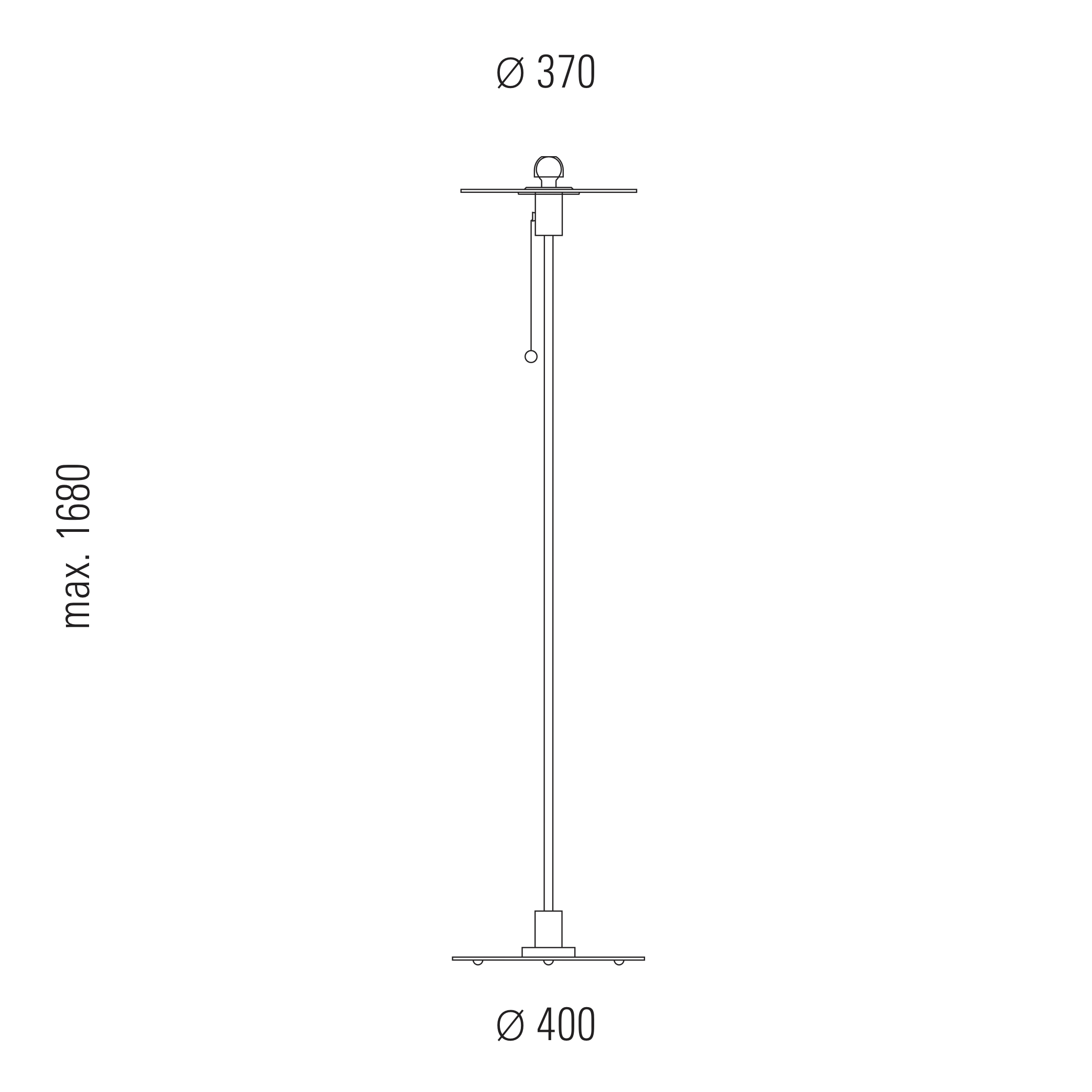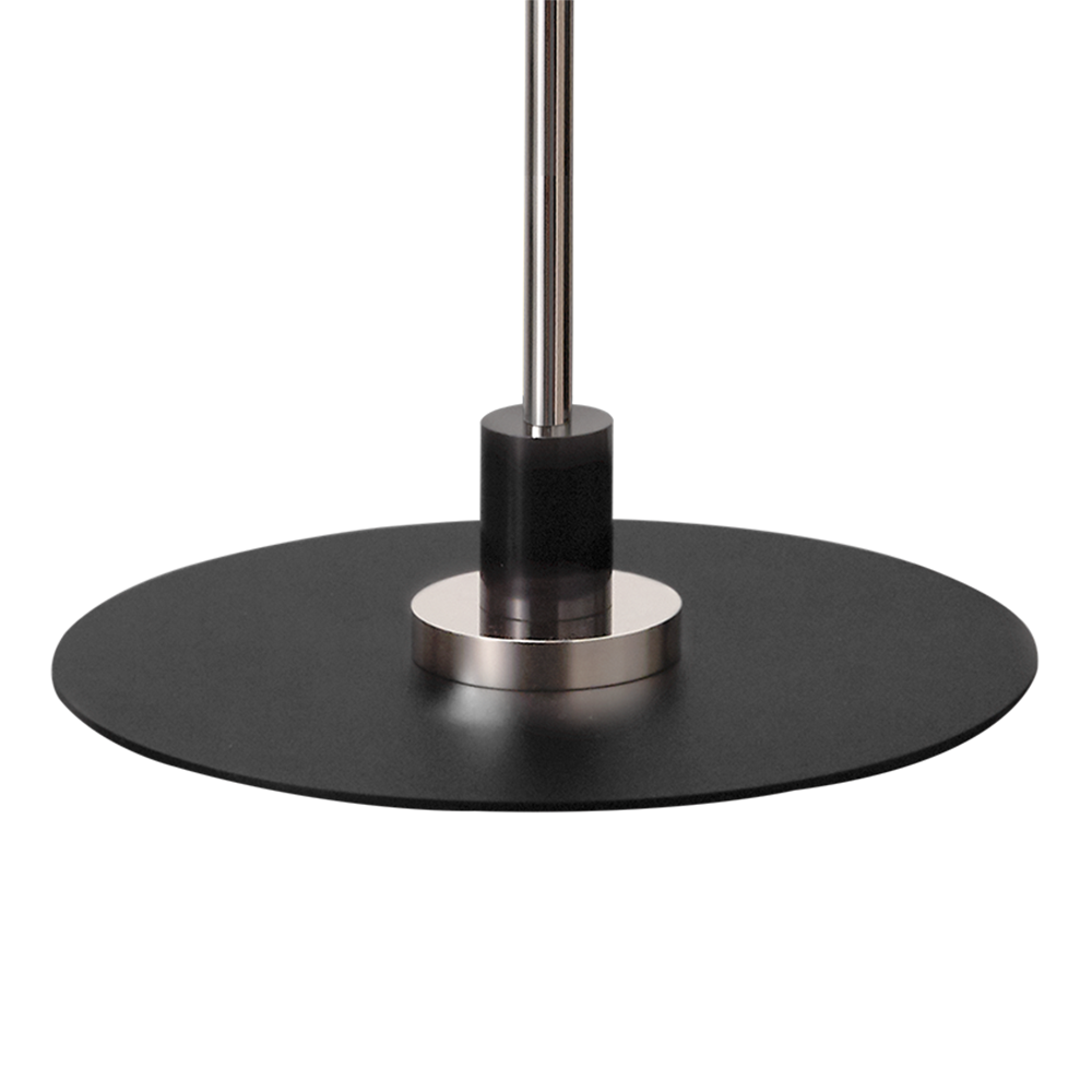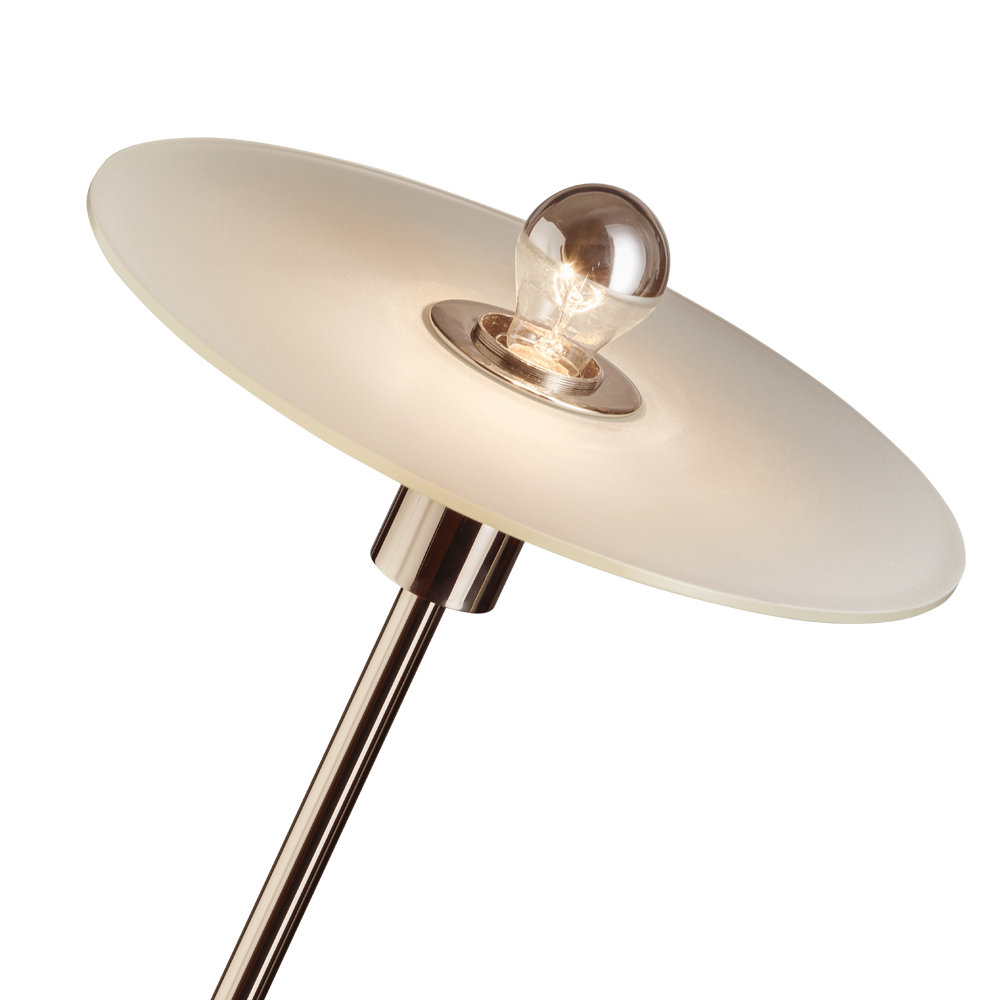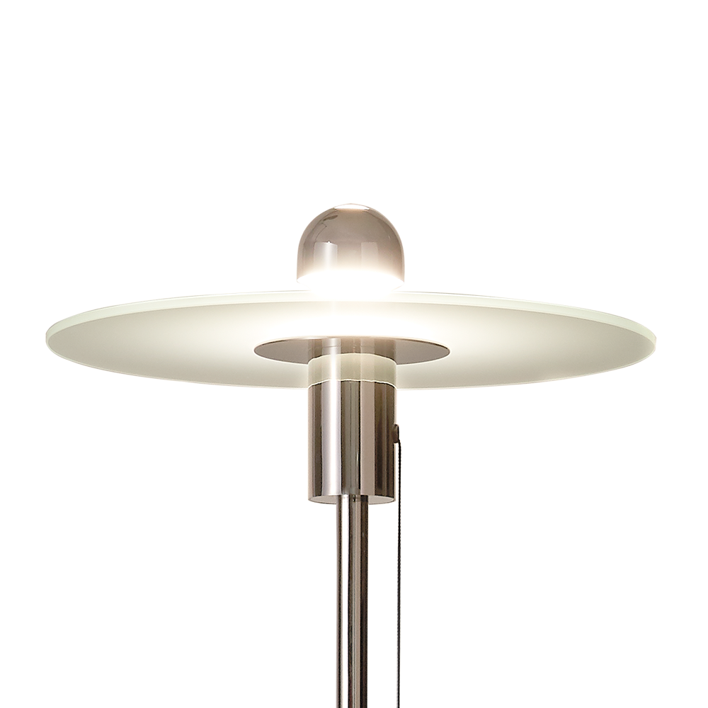 Stehleuchte aus Eisen schwarz lackiert, Messing vernickelt, Glas ätzmatt.