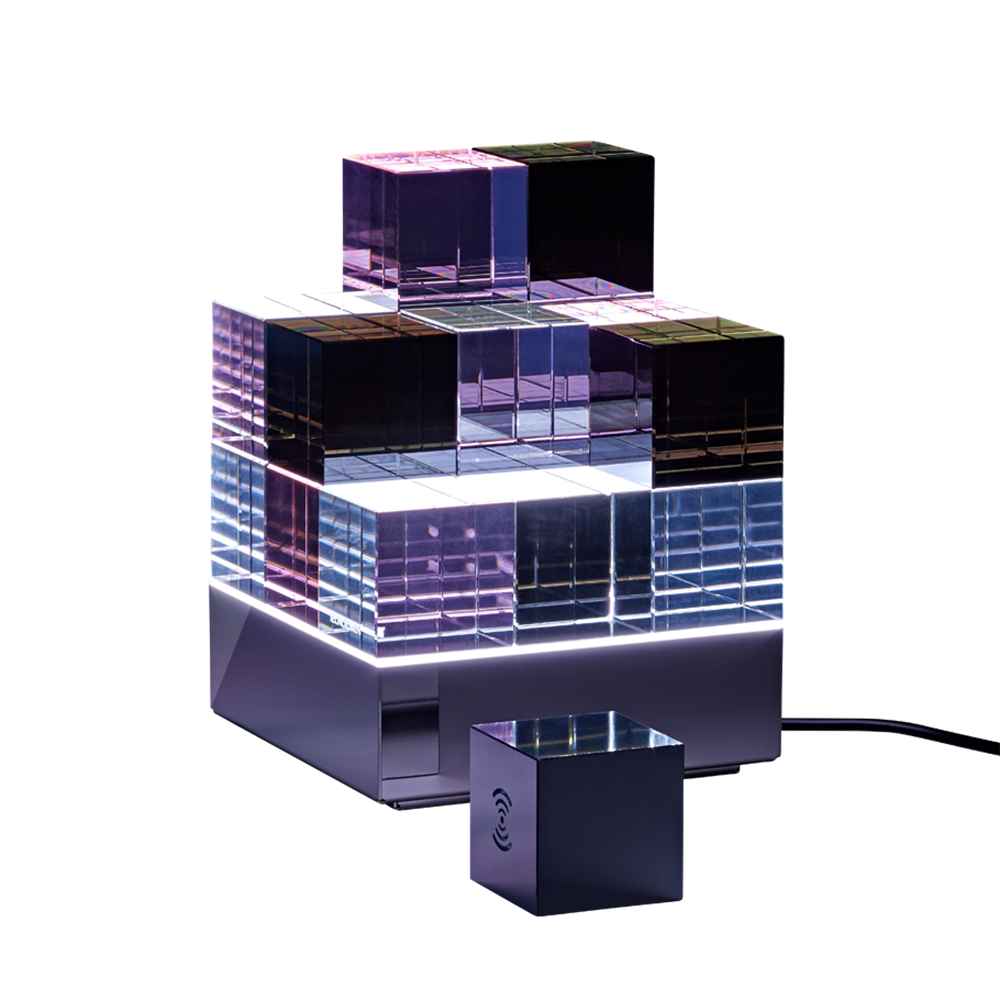 Mit der Erweiterung des etablierten CUBELIGHT um eine innovative Funksteuerung, ist es möglich, das Leuchtobjekt über einen Funksteuerwürfel aus einer Entfernung von bis zu 12 Metern anzusteuern.