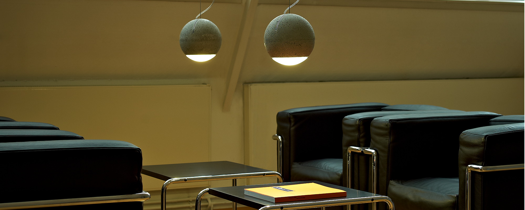 Überraschend, präzise und fast lebendig – mit seinen Leuchten schafft Joachim Manz eindringliche Lichtspiele, die die Grenzen zwischen Form und Raum auflösen. Aus Feinbeton gießt der freischaffende Bildhauer Leuchten wie die „Trabant 3“, die fast neugierig von oben herab zu schauen scheint.