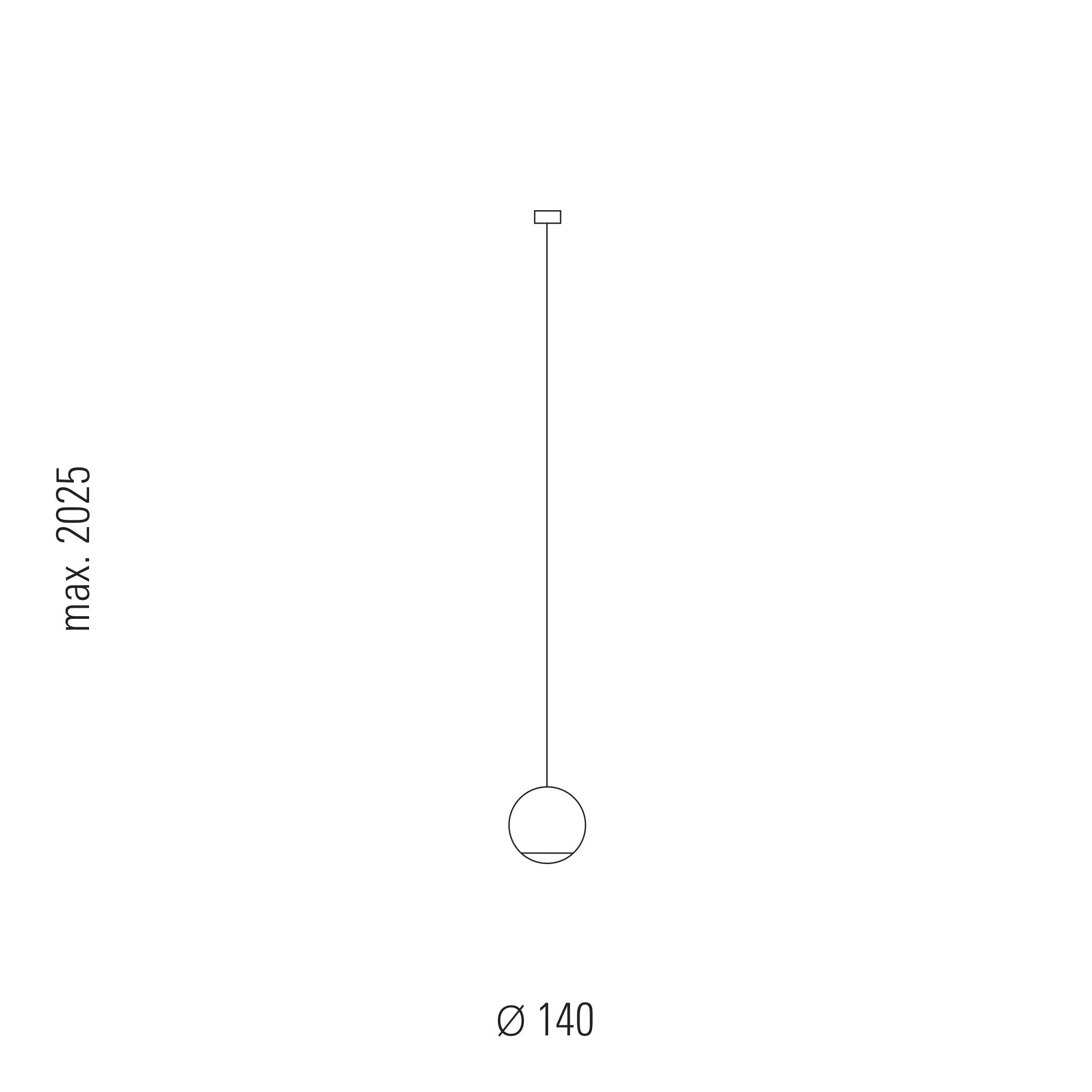 Nicht verstellbare Pendelleuchte aus pigmentiertem Spezialbeton, Glaslinse wahlweise matt oder klar. Kugeldurchmesser: 140 mm.