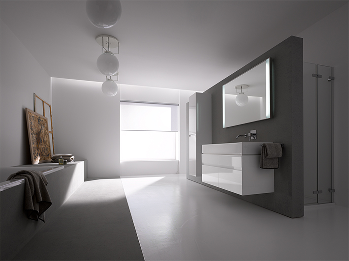 Die scheinbar im Raum schwebende Opalglaskugel der DMB 26 streut das Licht des Leuchtmittels diffus nach außen und hängt an drei 14 cm kurzen, filigranen Stangen, die wiederum im kreisrunden Deckenbaldachin münden. Die Glaskugel ist dabei in unterschiedlichen Größen erhältlich. Während das Glas opal überfangen ist, bestehen Stangen und Baldachin aus Metall in unterschiedlichen Oberflächenveredelungen.