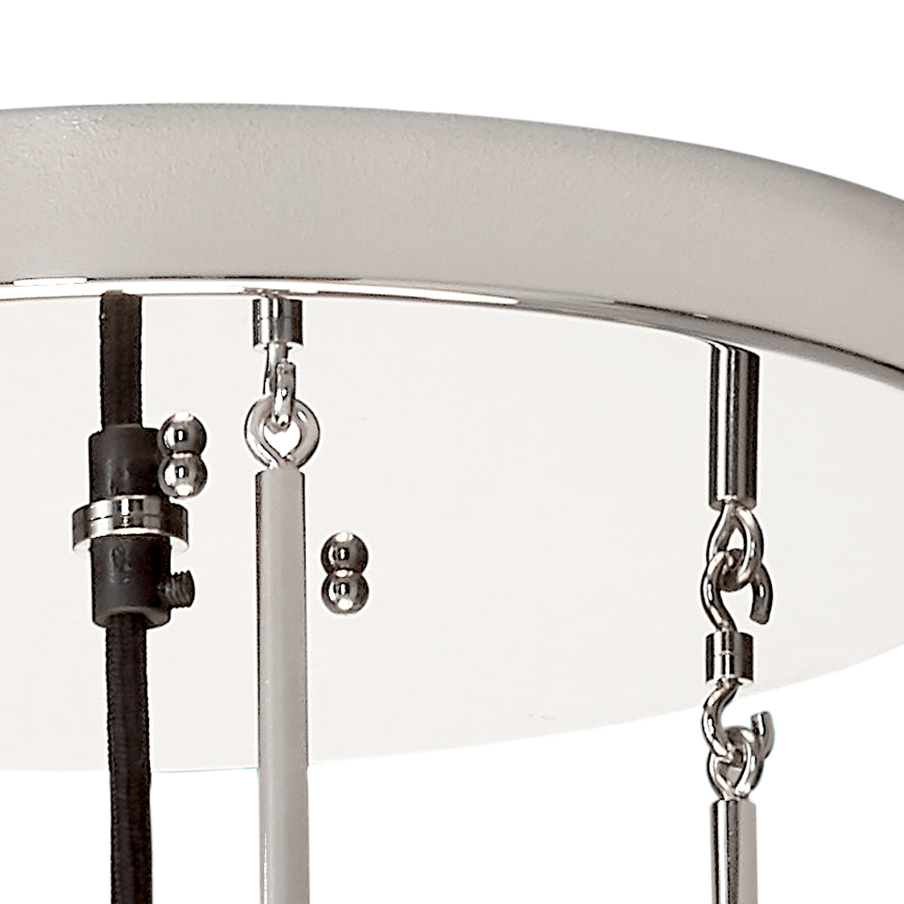 Die Deckenleuchte ist in den Oberflächen Metall vernickelt oder Messing poliert und zaponiert erhältlich.
