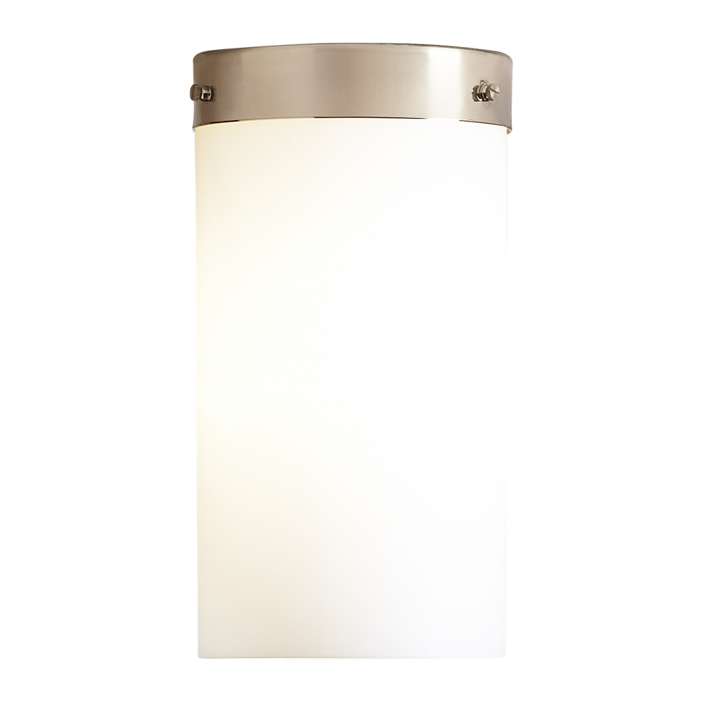 Deckenleuchte aus vernickeltem Metall, Opalglas, außen ätzmatt.