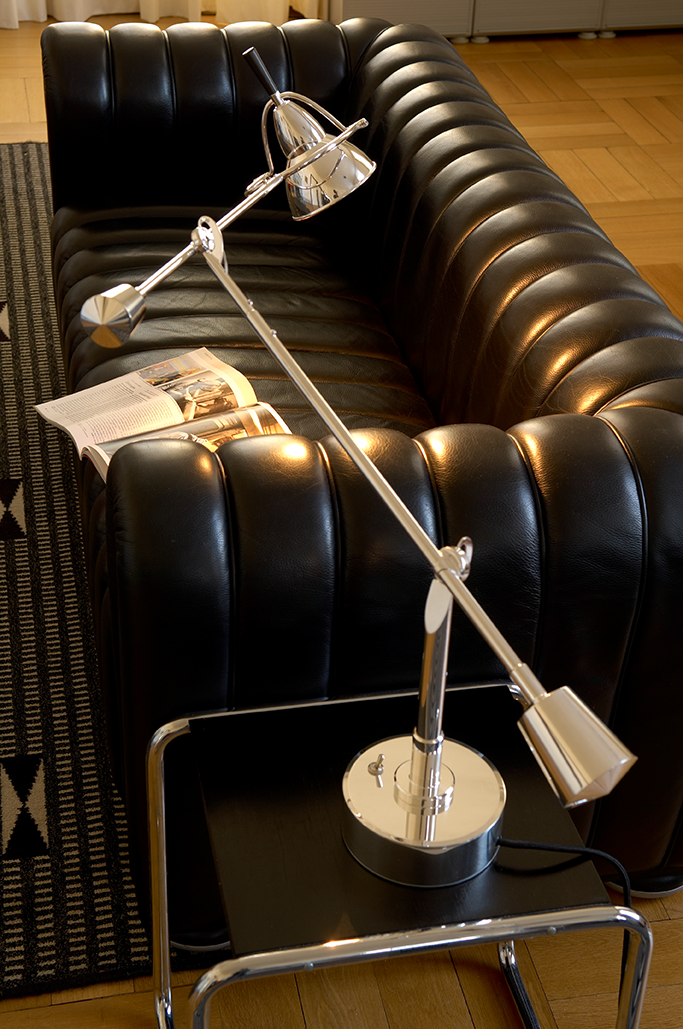 Die „Buquet Leuchte“ beeindruckt mit Funktionalität, Eleganz und einer mysteriös fragilen Aura. Ihr Schöpfer, ein französischer Ingenieur und Gestalter namens Édouard-Wilfrid Buquet hatte sie 1925 in Deutschland entworfen und wohl geahnt, dass ihm hier etwas Besonderes gelungen ist, denn er meldete die Leuchte zwei Jahre später am 9. Februar 1927 um 16:29 Uhr beim Ministère du Commerce et de L’industrie in Paris Teile dieser Leuchte, vor allem die Gelenke, als Patent an. Édouard-Wilfrid Buquet entwarf mehrere feine Leuchten. Vielmehr ist über ihn leider nicht bekannt. Die Form der EB 27 spricht jedoch Bände von seinem Sinn für Ästhetik und Funktion, die mit dem Esprit des Bauhauses eng verwandt war.