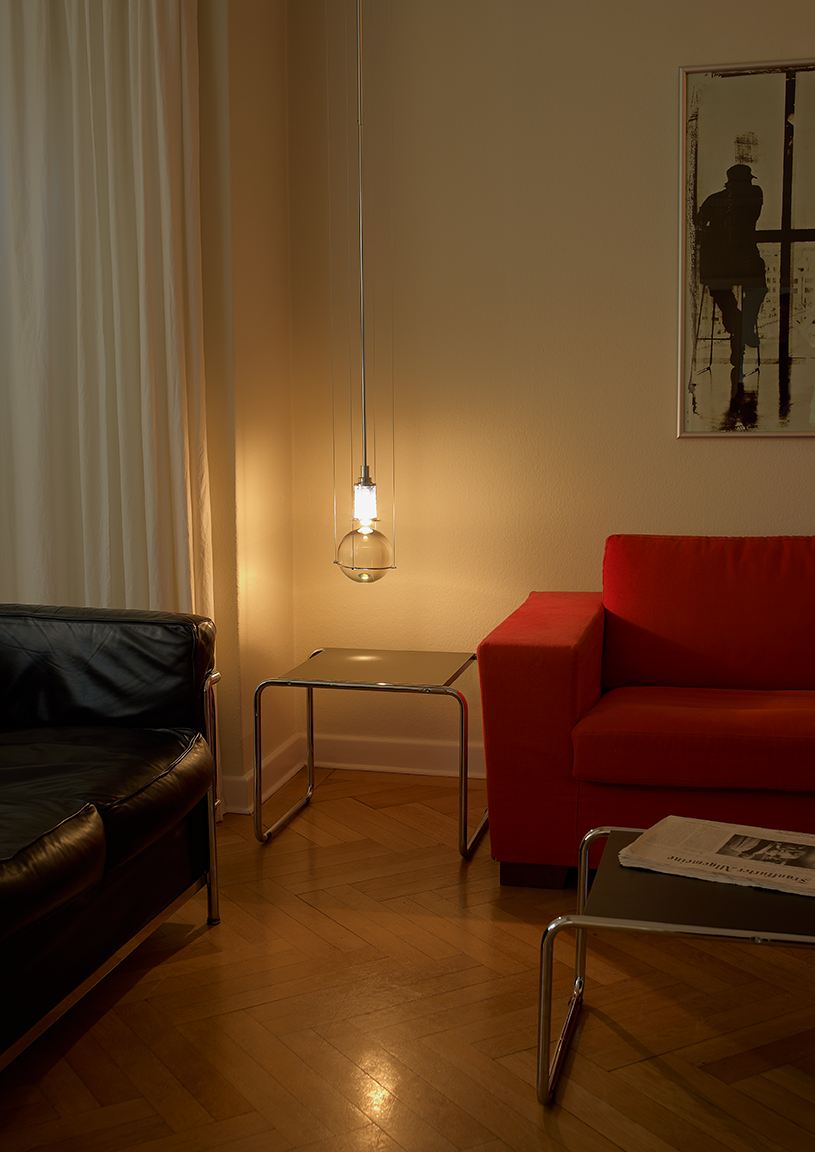 1981 wurde diese Hängeleuchte von Günter Leuchtmann eigens für das Restaurant namens „Le tre streghe” („Die drei Hexen”) in Hamburg entworfen. Eine aus Muranoglas handgefertigte Glaskugel wird von oben aus einem Metallsieb-Zylinder angestrahlt. Die Leuchte ist erhältlich als metall-verchromte und metall-vergoldete Variante.
