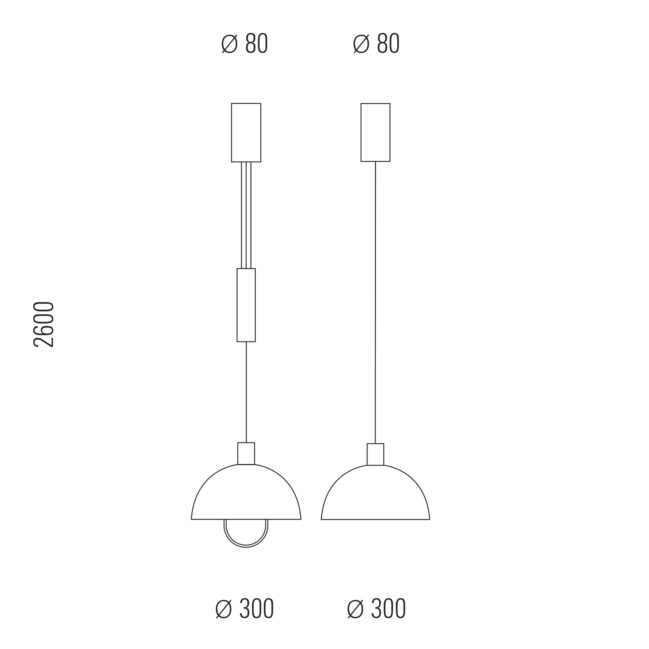 Beide Ausführungen (Schirmdurchmesser 300mm und 500mm) sind mit und ohne Rollenzug lieferbar in der Oberfläche Aluminium poliert und vernickelt.