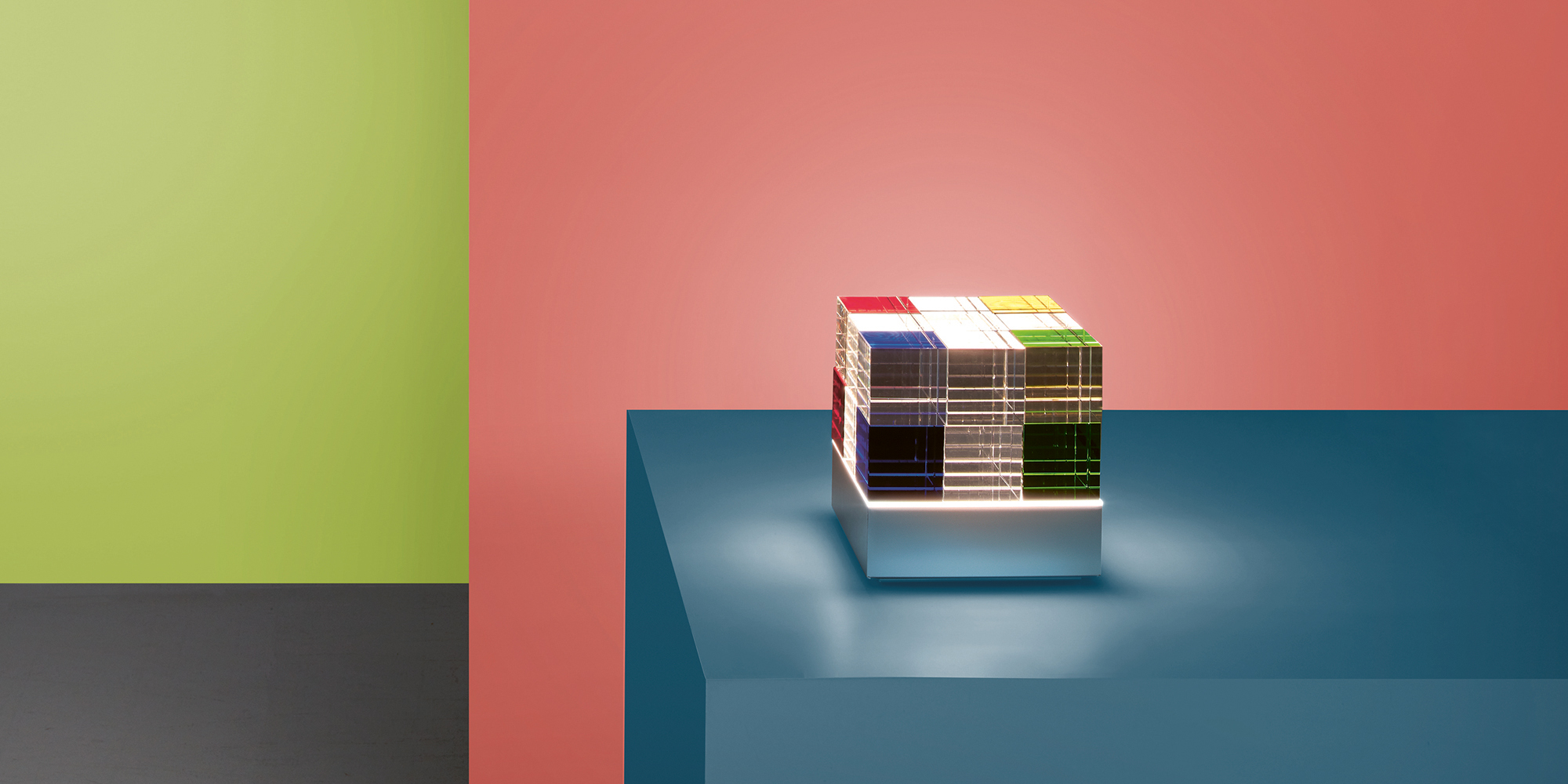 Die Design- und Objektleuchte MSCL 1 orientiert sich an der Bauhaus Architektur und erlaubt unendlich viele geometrische Gestaltungsmöglichkeiten und Farbkombinationen. Das klare und reduzierte Design bewirkt eine zeitlose Erscheinung, welche durch die verwendeten klassischen Materialien Glas und Edelstahl unterstrichen wird.