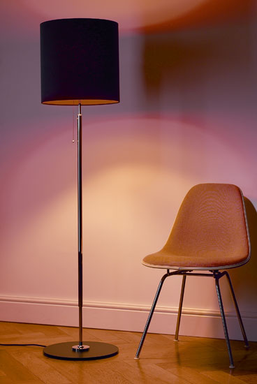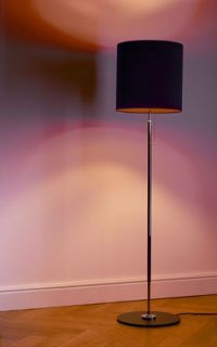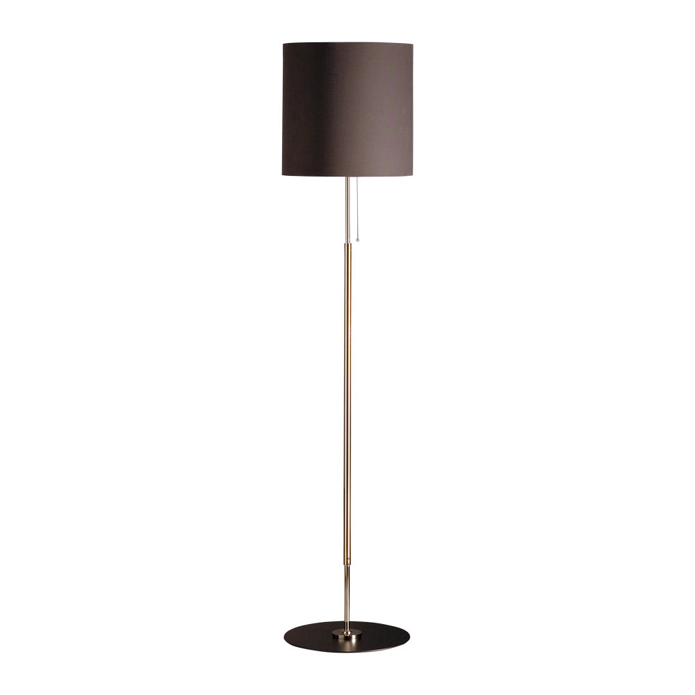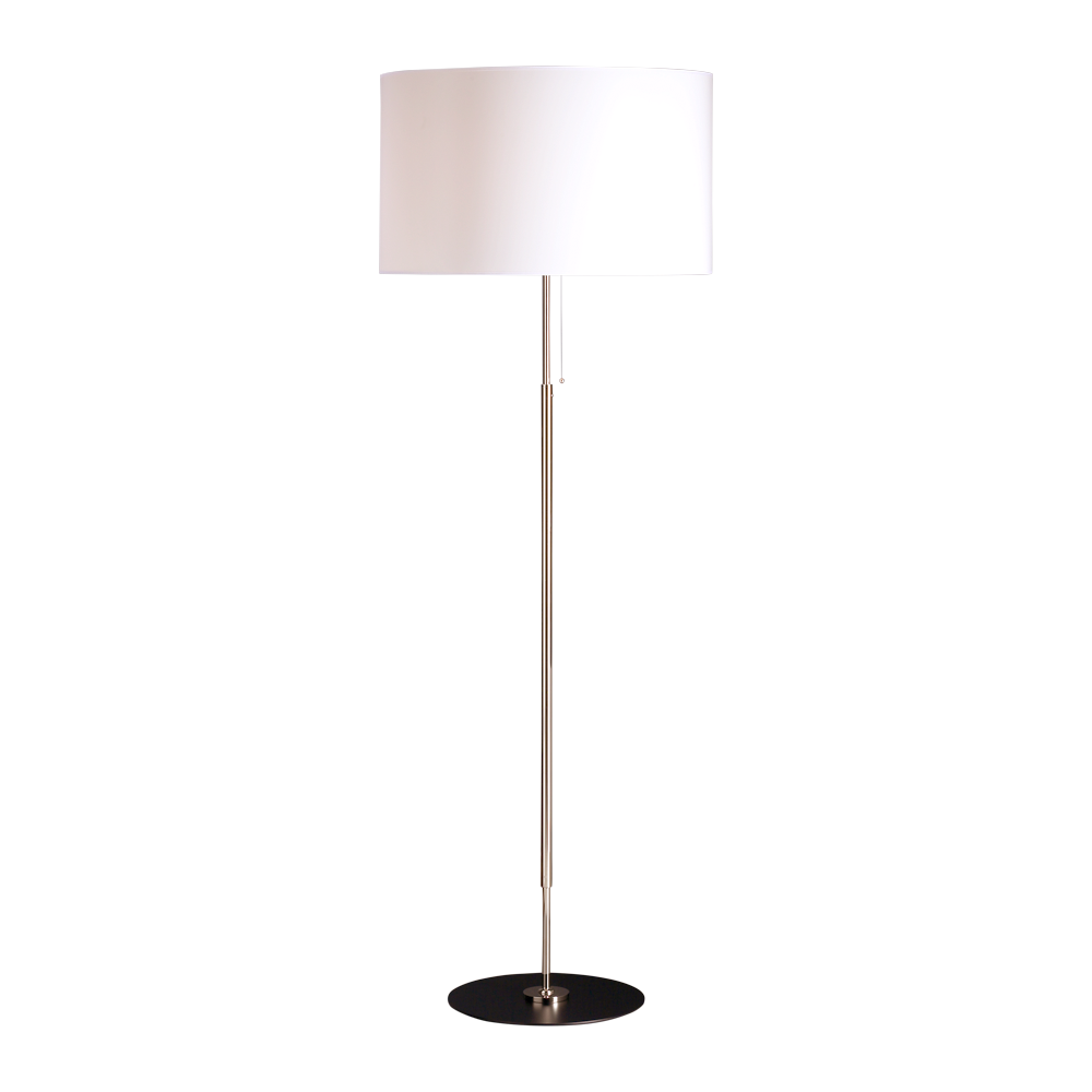 Stehleuchte für Stoffschirme, Messing vernickelt, Ø Fußplatte 36 cm oder 40 cm, Fußplatte schwarz lackiert.
