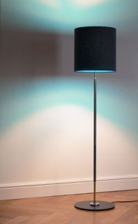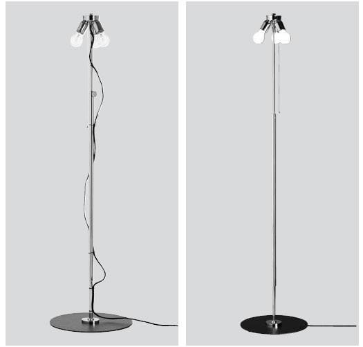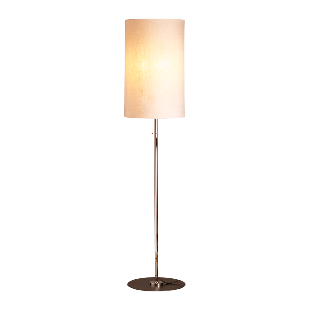 Stehleuchte von Walter Schnepel im klassischem Design. Mit höhenverstellbarem Metallfuß. Metall vernickel, Fußplatte schwarz lackiert. Sichtbarer- oder unsichtbarer Kabelführung.