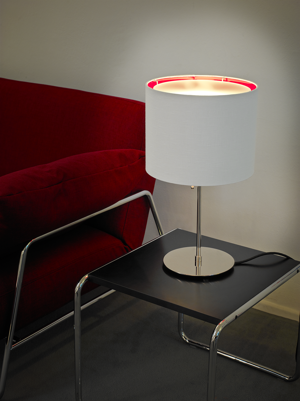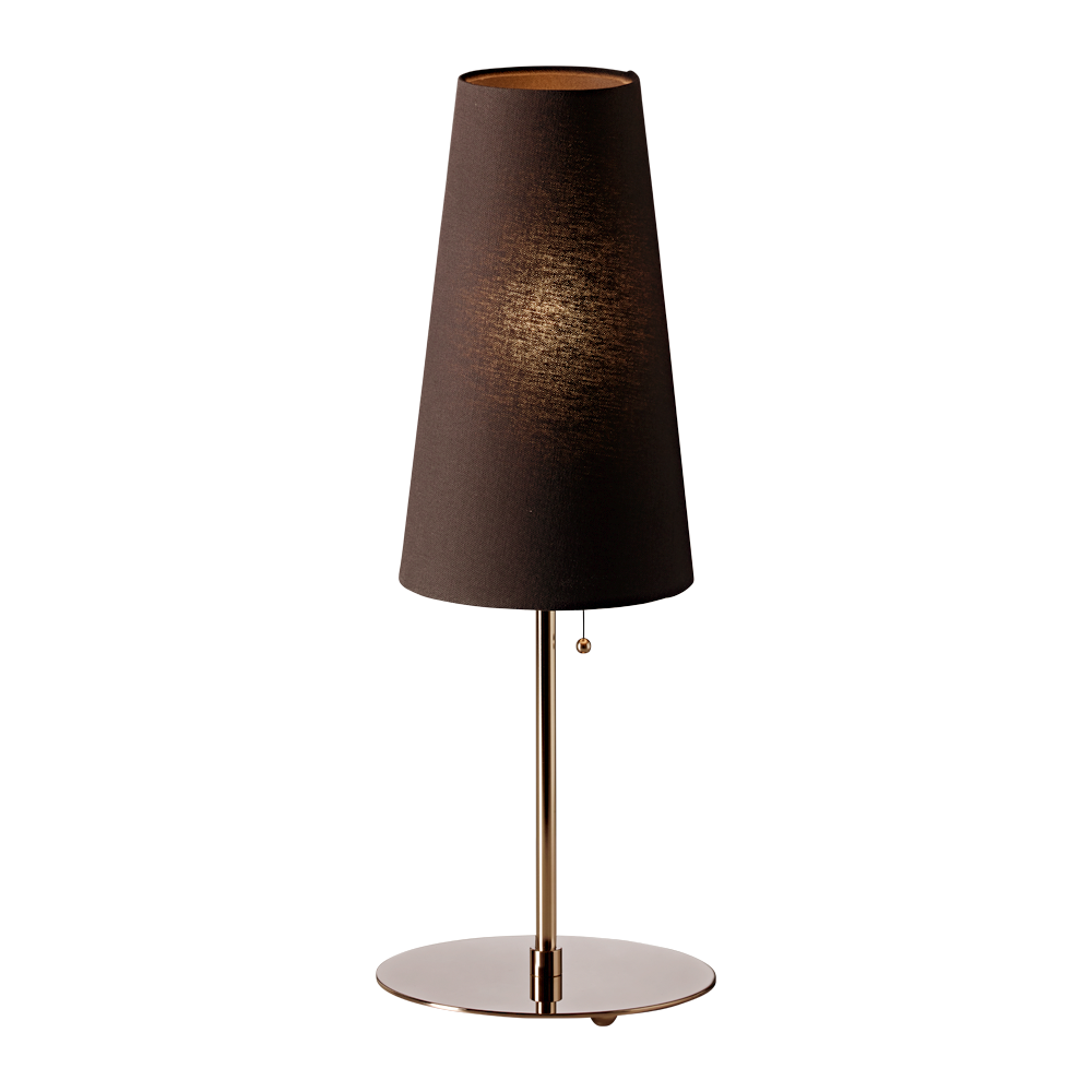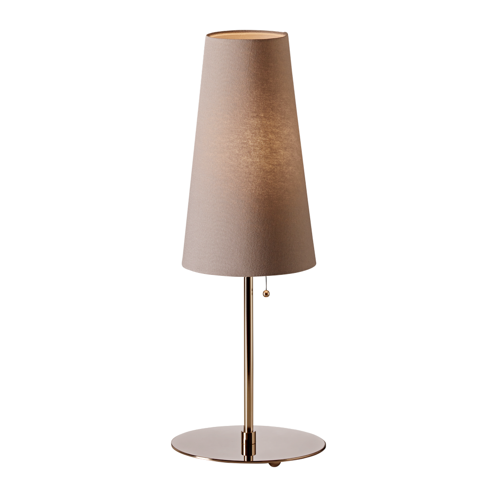 Diese von Walter Schnepel gestaltete Tischleuchte hat einen Schirm aus kaschiertem Leinen auf Transparentfolie und passend dazu eine stoffummantelte, schwarze Zuleitung. Der Sockel ist aus vernickeltem Messing. Ein edles Einrichtungsaccessoire, das wir in zwei Varianten und in fünf Farben anbieten.