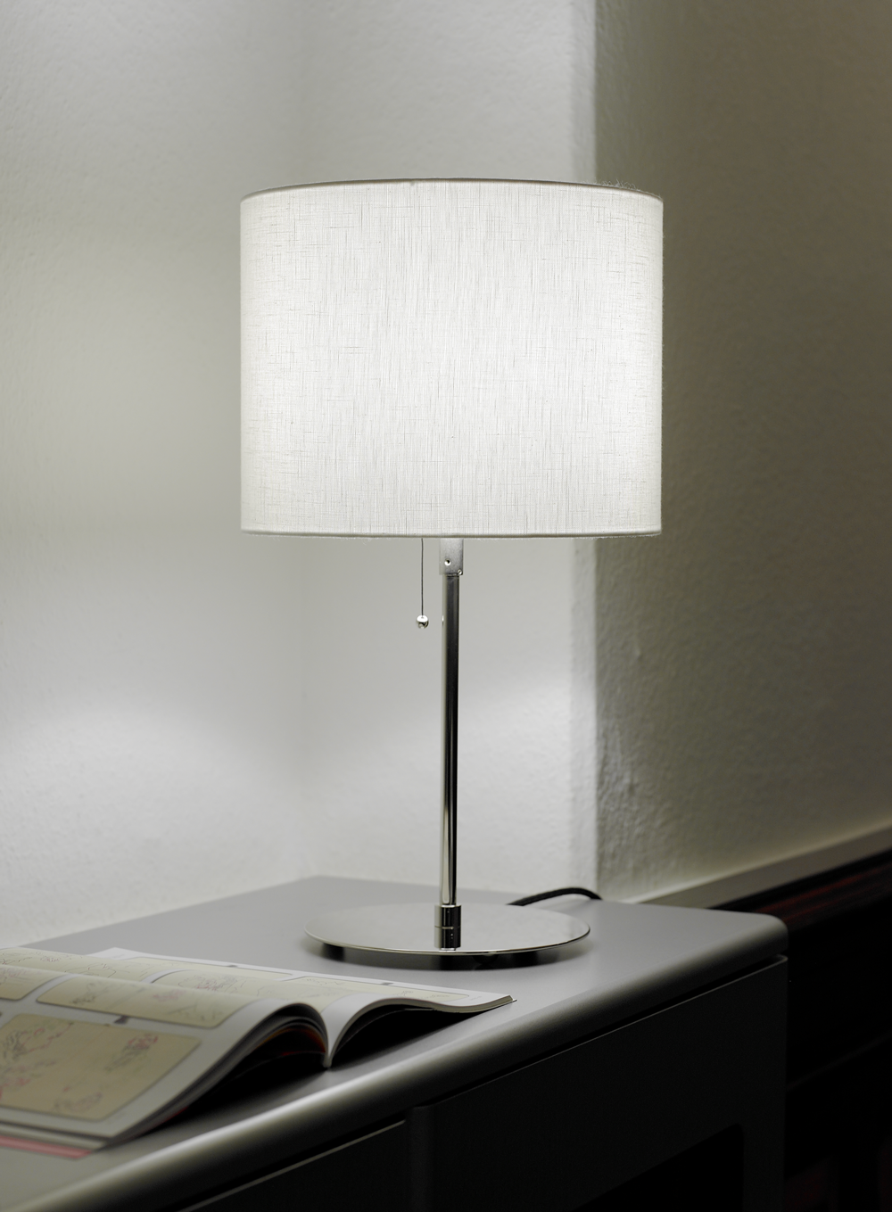 Tischleuchte für Stoffschirme, Metall vernickelt