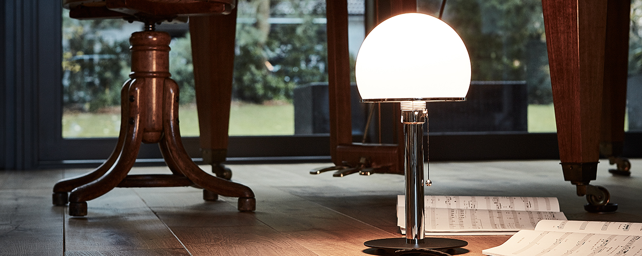Die berühmte Bauhaus Tischleuchte zeigt sich in Form der WA 23 SW Tischleuchte mit einem schwarz lackierten Metallsockel. Schon 1924 entworfen, glänzt das Modell noch heute im klassisch eleganten Charme.